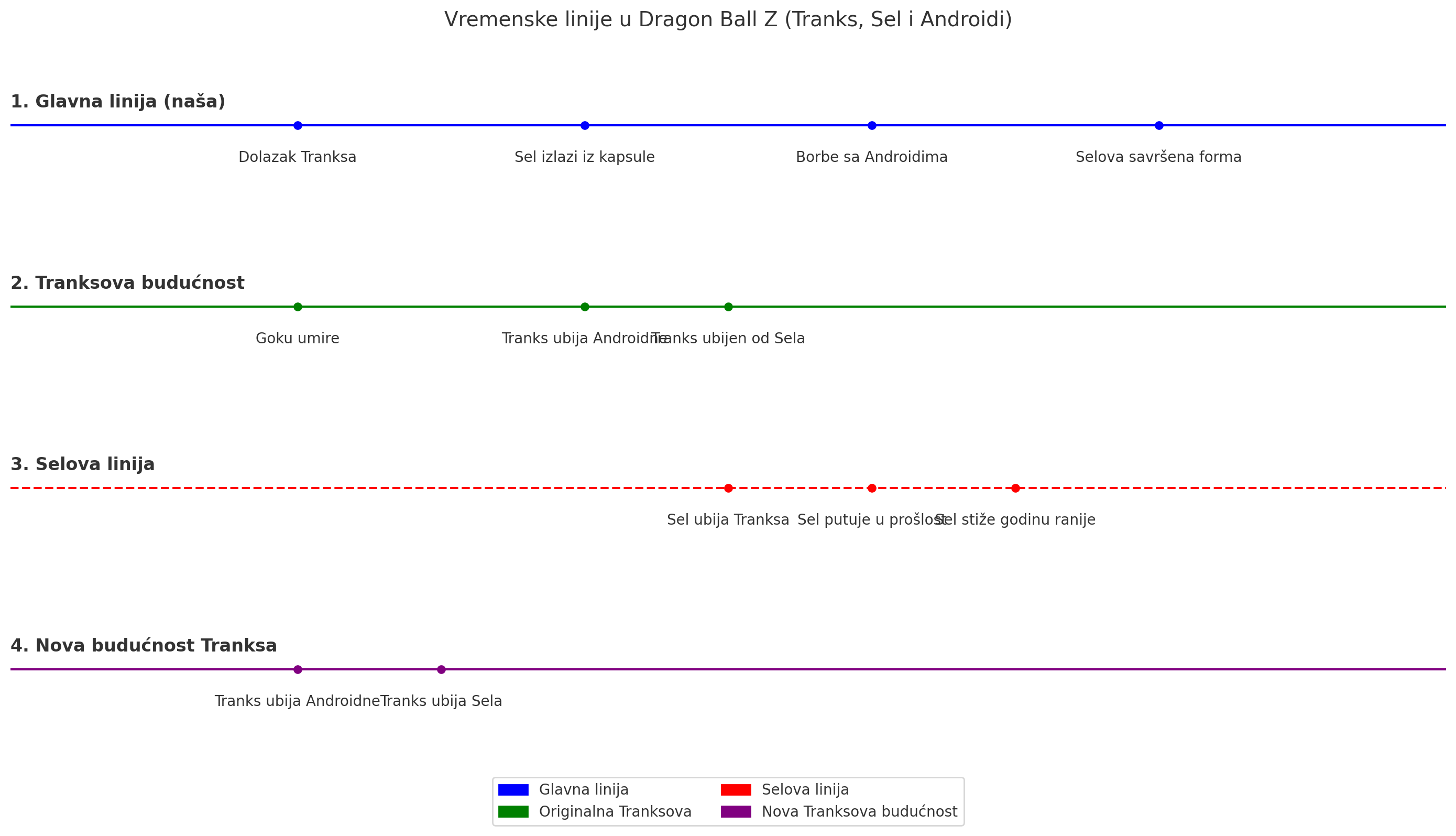 3. Selova linija (crvena, isprekidana)– Sel koristi Tranksovu vremensku mašinu.
